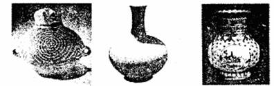 图一 人面彩陶壶 图二 邢窑白瓷长颈瓶 图三 粉彩开光花尊