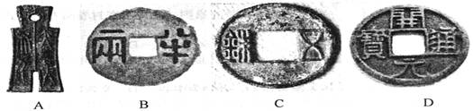 9.下列钱币中,能够反映诸侯割据到统一的时代变迁,并极大地巩固了国家统一的是( )