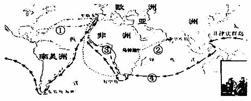 13.下图中所标注的主要航路中,证明地圆学说正确性的是 ( )
