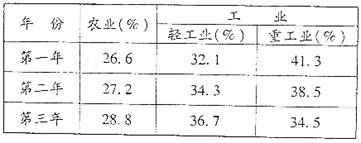 13. 下表反映了我国某一时期农业、轻工业和重工业在工农业总产值中所占比重的变化情况。该时期是