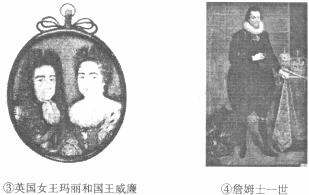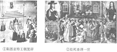 (1)按照英国清教徒革命的发展进程将上述图像排序,并据此概述革命期间的政体变化。(6分)