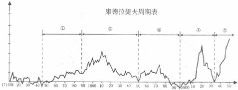 34.历史学家从不同的视角对国家间权利的转换作出了解释。康德拉捷夫世界经济增长与衰退的波动周期表(见下图)即在一定程度上反映了这样的历史转变进程。