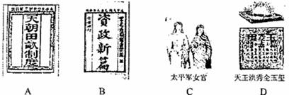 16.以下图片所反映的历史信息最能说明太平天国顺应历史发展潮流的是 ( )
