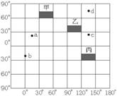有关甲、乙、丙三个阴影区域图上比例尺的叙述,