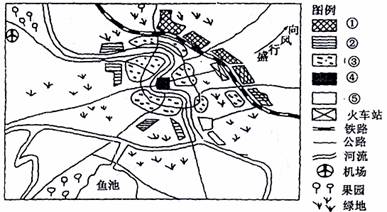 30.读城市功能分区示意图,以合理布局城市功能区的角度考虑,将正确的功能区数字填入
