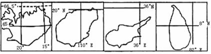 20.上图四个岛屿中,位于板块生长边界的是 ( )
