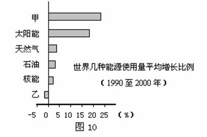 26.世界上利用甲能源(可再生能源)发电的前三位国家为德国、美国和丹麦。图中甲、乙(不可再生能源)两种能源分别代表 ( )