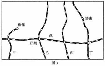 读我国部分地区铁路线分布示意图(图3),回答6-8题。
