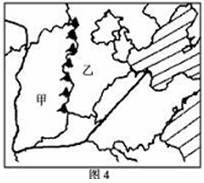 9.图4甲区域中,要实现可持续发展,促进农业产出的主要手段是 ( )