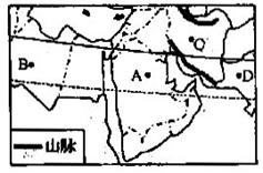 (4)图中B、D均为热带沙漠气候,其成因有何不同?(2分)