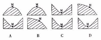3.下图A、B、C、D四地各沿两个相互垂直的方向所作的地形剖面图,对四图中M点所在