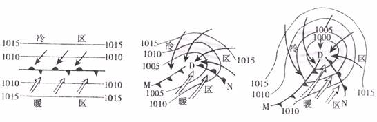 17.读温带锋面气旋形成示意图,下列叙述正确的是 ( )
