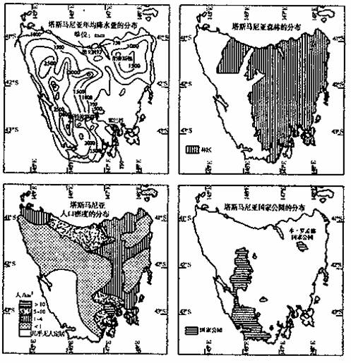 7.在南纬42度30分,东经147度30分处的人口密度约是 ( )
