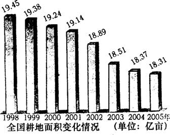 (1)从图中可看出,中国耕地减少最快的年份是___________年。(2分)