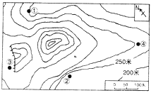 4.若乙组队员已经宿营在图中最高处,为了可以互相观测到对方,从安全角度考虑,甲组应该把宿营地选择在图示四地中的