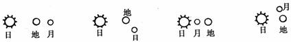 8.今年农历二月初二,山东省各地看到了日蚀(食)现象,这次日食发生时,日地月的位置关系可能是下图中的 ( )