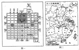 图一是市坊整齐划一的国际大都市唐朝长安平面图。