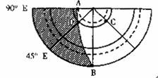 2.读以极点为中心的局部经纬网图(图1),阴影部分表示黑夜,则图中A点的地方时是