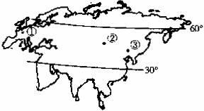 (3)描述图中①、②、③三地之间年降水量的空间变化规律,并说明其成因。