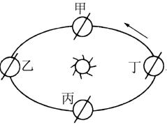 (4)左图这一天对应于右图中的 (甲、乙、丙、丁)位置。这一天之后,地球公转速度将 (加快、减慢)