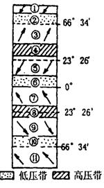 (2)地球上气压带和风带的位置,由于随季节变化而移动,每年4月-5月,气压带、风带移动规律是 ( )