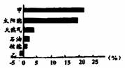 右图为“世界几种能源使用量年均增长比例(1990年至2000年)示意图”,其中甲为可再生能源,乙为不可再生能源,甲能源发电量最多的国家为德国、丹麦和美国。读图回答22-23题。