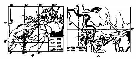 (3)弱水下游流入甲、乙两湖,乙湖已于上世纪后期彻底干枯,成为沙尘暴的源地之一。造成这一结果的人为因素主要有 、 、 、 我国荒漠化防治的主要措施有 、 (7分)