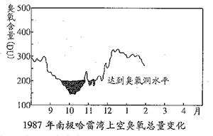 材料三:科学家最近发现,南极上空渐渐出现了一种低空云团,象一团褐色的云雾,而且年复一年,越来越大,越来越浓没有消散或飘走的趋势。据分析,烟雾是由水汽、冰晶及悬浮在空气中密度很大的固体飘尘组成,飘尘主要成分是硫的氧化物。