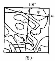 读“我国某区域年平均气温曲线图”(图3),回答8-10题。