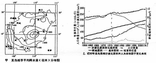 (3)读图,描述近50年图示岛屿西部沙漠化面积的变化特点,并分析该地沙漠化的人为原因。