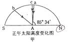 (1)图甲是该小组测得的A城市全年正午太阳高度变化情况,并记录下当太阳在a位置时,北京时间是12点40分。由此推知该地的地理坐标为 。