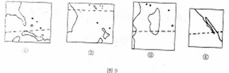19.图中所示的沿岸地区有寒流经过的是 ( )