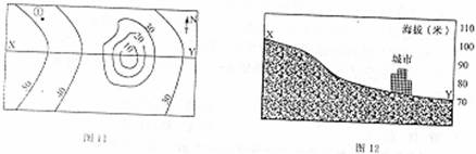 图11为“某地潜水位等值线图”,图12表示图11中“XY两地间的剖面图”。读图回答23-24题。