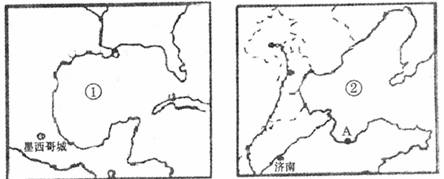 (1)简析①②两海湾风暴潮的主要类型及风暴潮多发季节的不同。(4分)