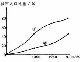 (1)根据城市化水平辨别图中表示发达国家的是_________曲线,表示发展中国家的是___________;