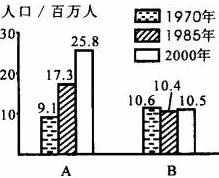(3) A、B两城市人口变化的原因:A______ ___ B