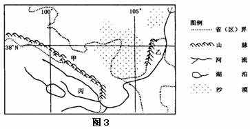读图3,图中甲、乙、丙是重要的农业区,回答8~10题。