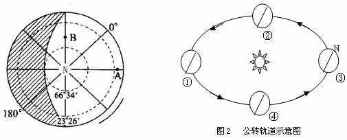 ⑵ 图1表示的是北半球 (节气)的太阳光照图。(1分)