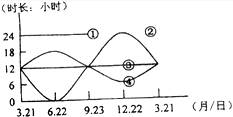 ⑶ A与B相比,自转线速度较大的是 ,该日正午太阳高度较大的是 ,该日白昼时间较长的是 。(3分)