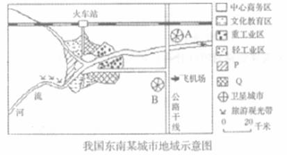 (3)城市中P、Q两地都是住宅区,其中 是高级住宅区。(2分)