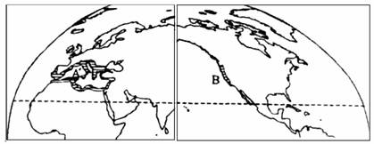 (2)该气候在A处分布面积比B处大的原因是_ _。(3分)