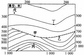 6、图中,甲、乙、丙、丁四地点最可能形成瀑布的是( )