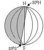 8、一同学在北半球某地图示时间内,利用日影测量当地经纬度,当竖直的竹竿影子朝正北时,正好是北京时间12:20,日影与竹竿等长,则该地的地理坐标是( )