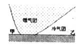 下图是某天气系统的垂直剖面图,其中甲(110°E、40°N)、乙(115°E、40°N)是近地面的两点。根据所学回答4-6题。