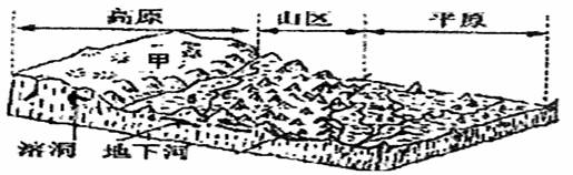28.图中甲地反映的地形主要分布在我国的 ( )