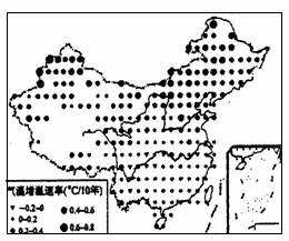 下图为1951-2002年我国气温增温速率的分布图。回答36-37题。