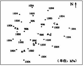 42.读北半球某地区的海平面等压线图,完成下列要求。