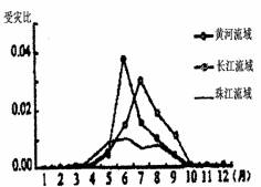 (双选)40.下图为我国三个流域“水灾受灾比(受水灾的县域个数与总县域个数的比值)多年平均的月变化图”。
