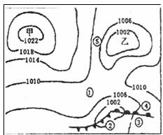 (1)影响甲处的天气系统是 ,在该系统的控制下,甲处的天气特点是 。