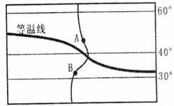 (1)若上图的地球公转至远日点附近时,因海陆热力差异造成的等温线分布状况,则A、B两城市位于大陆的 岸,A城市的气候类型是 或 。此时B城市的气候特征是 ,流经B城市沿海的洋流可能是 或 ,该洋流对附近地区气候的影响是 。